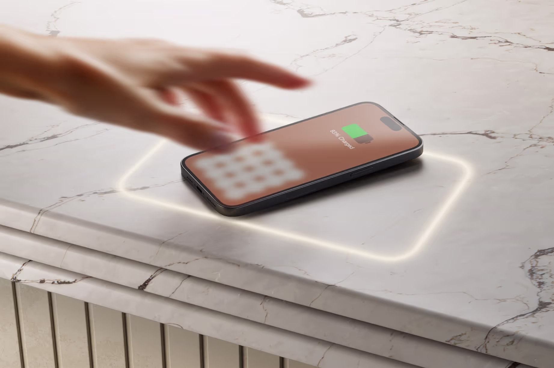 Imagine effortlessly charging your Qi-compatible devices anywhere on your countertop. As a certified and authorized vendor of FreePower® under-surface technology, charge your devices effortlessly with an illuminated 'Charging Halo' offering a clutter-free, aesthetically integrated power solution for modern living.